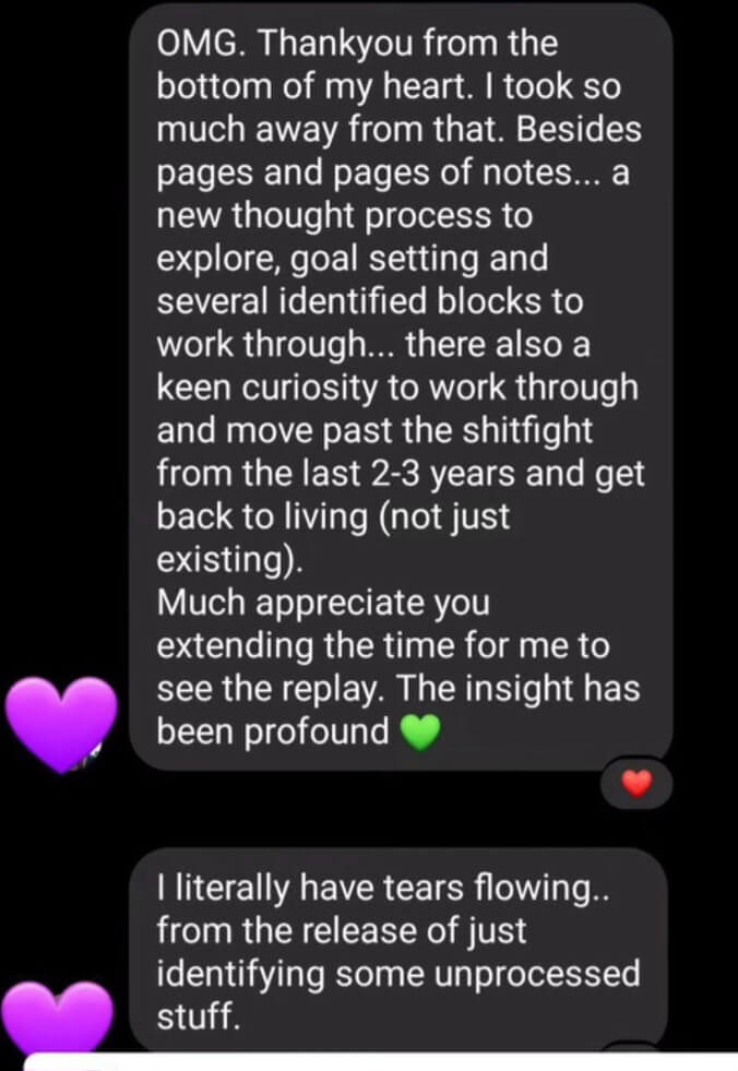 Currently enrolled in Nervous system and somatic regulation certification and 12 month Mind-Body Coaching Mastery Certification